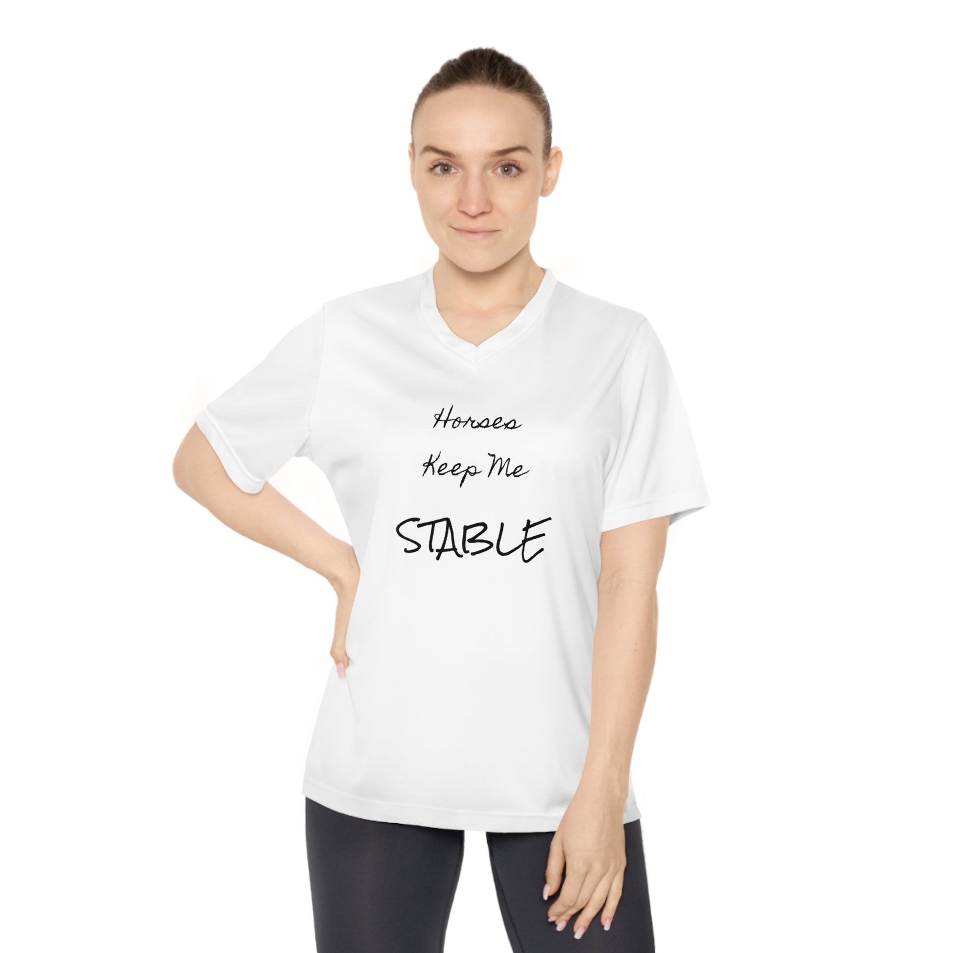 Horses Keep Me STABLE Women's Performance V-Neck T-Shirt